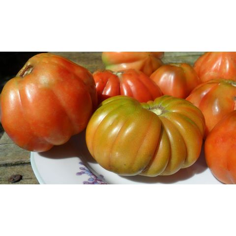 В переводе с англ. - Аккордеон по цвету. Среднеранний (100 -120дней), очаровательный, великолепный, коллекционный сорт из Америки. Индет. Куст крепкий, мощный, высотой до 2х метров в открытом грунте. Для того что бы этот сорт дал действительно хороший урожай, его нужно выращивать в теплице, тогда там его куст растет в два стебля и по высоте в целом, он как правило достигает, двух с половиной метров. Плоды сильноребристые, мясистые, не пустотелые, массой 250-650 грамм. При полной зрелости, в окраске плодов присутствуют жёлтый и розовый цвета. Мякоть томатов сочная, сладкая, ароматная. Вкус у томатов сладкий с едва заметной кислинкой и легким привкусом лимона. Назначение салатное, для кружевной нарезки в заморозку, для пасты, соусов. Стрессоустойчивый. Урожайность хорошая даже в прохладное и дождливое лето. Би-колорность поверхностная, обусловлена, скорее всего повышенной потребностью сорта к калию. Хранятся помидоры очень долго, не меняя при этом своего вкуса. Отлично переносят томаты транспортировку на дальние расстояния при условии, если они были собраны слегка недозревшими.
