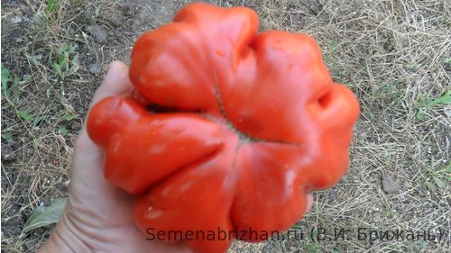 Коллекционный, редкий, старинный, необычайный сорт любительской селекции из Красноярского края, среднего срока созревания. Индетерминантный, высокорослый (1,6-1,8 м. в теплице и около 1,5 м.в открытом грунте). Плоды от 500 до 1000гр, красного цвета, пр...
