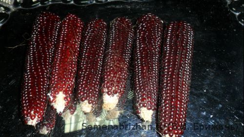 Раннеспелый высокоурожайный сорт из Китая (до 80 дней). Дружно формирует урожай. растение высотой до 150 см. на одном растении формирует до 5 початков. Початки крупные, длиной до 19 см. Зерно округло-вытянутое, перлововидное, чёрно-бордово-красное.Отли...