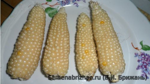 Интересная коллекционая реликвия из Южной Америки. Очень древний сорт белой кукурузы, которую выращивали индейцы более 2000 лет назад и сохранили до наших дней. Среднеранний сорт (вегетационный период составляет 75-80 дней). Стебель высотой до 130 см. Початки округло-пирамидальные, длиной до 10 см. Зерно округло-вытянутое, с заострённой вершинкой,белое, в меру сладкое. Идеальный сорт для употребления в свежем виде, для приготовления на гриле, варения и запекания. Очень вкусная и необычная вареная. Очень нравится детям. Зрелые ядра отлично подходят для обжаривания, измельчения в особую муку, приготовления замечательной мамалыги, очень хорошей крупы и ароматного кукурузного хлеба, вкусная в отварном виде в период молочно-восковой спелости, а так же используется при откорме домашней птицы и скота. Содержит много полезных веществ для организма.
