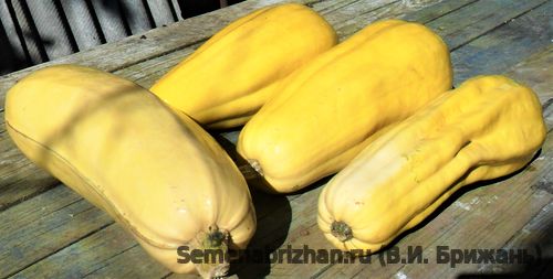 Старинный, коллекционный Английский Кабачок-цуккини. Раннеспелый (40-50 дней от всходов до начала созревания) сорт. Куст довольно компактный, главный побег короткий. Плод золотисто-белый, цилиндрический, чуть ребристый, длиной 18-29 см, массой 0,6-1,4 кг. Кора тонкая. Мякоть золотистая, плотная, толстая, нежная. Нежная мякоть ценится за свой вкус и содержит витамин А, витамины группы В, витамин С и важные минералы. Легкие, низкокалорийные цуккини можно готовить на пару, тушить, обжаривать, жарить на гриле или наполнять. Вкусовые и технологические качества отличные. Урожайность 12-14 кг/м2.