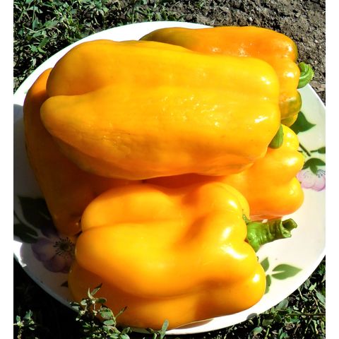 Высокопродуктивный коллекционный сорт сладкого перца из США, для открытого грунта и пленочных теплиц. В переводе из английского языка имеет значение – Близнецы. Вероятнее всего такое название сорт получил благодаря сильной схожести всех плодов, растущих на кустарниках. Среднеранний крупноплодный сорт. Собирать урожай можно через 75-82 дней после высадки семян. Если нужно дождаться полного созревания, то необходимо еще подождать дней 20. Кусты перца отличаются средним размером, также они компактны, что позволяет высаживать культуру довольно плотно. Растение не раскидистое, средне облиственные. Максимальная высота одного куста доходит до 65 см. Листья крупные, серо-зеленого цвета. Благодаря такому размеру они хорошо закрывают формирующиеся плоды от прямых солнечных лучей. В итоге на одном кусте может созревать до 9-10 плодов. Перцы имеют кубовидную вытянутую форму, длинной в среднем до 17 см.,с глянцевым блеском. Число гнезд 3-4. Сами перцы отличаются толстыми стенками толщиной до 8 мм. Техническую зрелость плода можно легко определить по приглушенно зеленому цвету. Такие плоды можно собирать для дозревания. Полное созревание наступает тогда, когда перцы становятся насыщенно золотисто-жёлтыми. Масса перца зависит от условий выращивания. В парнике вес одного перца составляет в среднем 320 г. Если культура выращивается в открытой грядке, то перцы будут не такими тяжелыми, порядка 240 г. Перец обладает тонкой кожурой и нежнейшей мякотью. Созревшие плоды отличаются совершенными, дразнящими, изумительно сладкими вкусовыми качествами. Перец можно использовать как свежим, так и для любых переработок. Салаты, лечо, жаркое, закуски – всё это отличается особым, неповторимым колоритом благодаря добавлению перцев данного сорта. Свежесорванные плоды являются хрустящими, имеют толстую мясистую и очень сочную стенку. В пакете 20 шт. семян.