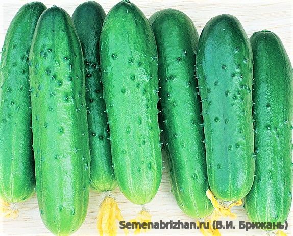 Раннеспелый партенокарпический, подходит для весенних теплиц, огородов либо укрытий из пленки.Период от всходов до плодоношения составляет 46-50 дней. Растения смешанного типа цветения. Плод удлиненно-цилиндрический, длиной 20-30 см, диаметром 5,0-5,5 см, массой 350-400 гр, равномерной темно-зеленой окраски, блестящий, крупнобугорчатый. Урожайность 8-9 кг с куста. Устойчив к кладоспориозу (оливковая пятнистость), к вирусному заболеванию – мозаики (ВОМ), мучнистой росе и пероноспорозу (ложная мучнистая роса). Для употребления в свежем виде и в салатах, а также используются для маринования..
