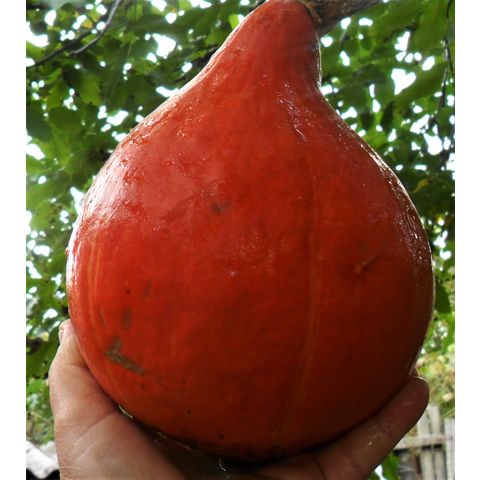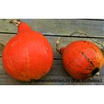 Очень ранняя коллекционная Японская тыква. Хорошо выдерживает ночные похолодания. Происходит из предгорных районов с прохладным переменчивым климатом. Срок созревания: раннее (90-95 дней от посева), дружное. Растение с компактными плетевидными побегами и небольшими почковидными листьями. Высота растения достигает 60 см, длина - 2,4 м. Плоды: округлой, слегка грушевидной или чалмовидной формы с выпуклой вершиной, размер плода (ВхД): 16х10 см; кожура гладкая, насыщенно-красно-оранжевая с желтыми и зелёными полосами между сегментами. Мякоть тёмно-желто-оранжевая, чрезвычайно богата витаминами и минералами, с ореховым привкусом и с приятным фруктовым ароматом. Масса тыквы - 1,2-1,7 . Сладкая, вкусная, отлично подходит для жарки, запекания и приготовления пирогов. При термической обработке появляется нежный ореховый привкус. Кора тоньше, чем у других сортов, легко режется ножом. Тыквы хорошо транспортируются и хранятся в течение 100 дней после съема. Урожайность 4-5 кг/кв. м. На одном растении с гарантией вызревает 5-8 плода. Назначение: для потребления в свежем виде и переработки, так же плоды чрезвычайно декоративны - прекрасное украшение осенне-зимних композиций. Очень вкусный сорт для приготовления пищи. Ценность сорта – урожайность, великолепные вкусовые качества, транспортабельность, лежкость до 7 месяцев.