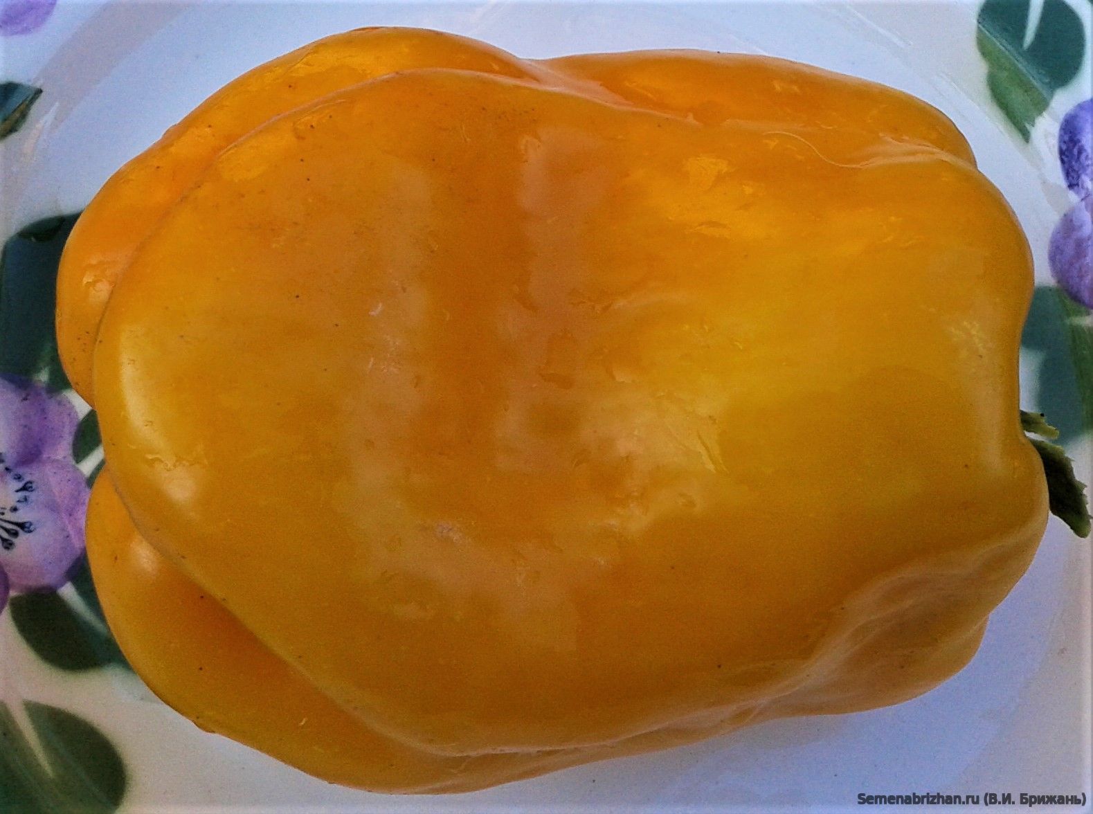 Идеальный коллекционный крупноплодный сорт для любителей желтых перцев родом из Италии. Рекомендуется для пленочных теплиц. Первые плоды созревают в среднеранние сроки, через 100-115 дней от всходов. Растения полураскидистые, высотой 80-100 см. Очень красивы в плодоношении. Плоды кубовидно-призмовидные, толстостенные, массой 200-300 г, в технической спелости светло-зеленого, в биологической – жёлто-золотистого цвета, вкусные и ароматные, мясистые - толщина стенок 7-8 мм. Плоды с сочной, ароматной мякотью, идеальны для фарширования, употребления в свежем виде и переработки. При длительном хранении не теряет упругости и вкусовых качеств. Урожайность в теплице 12-14 кг/м2, схема посадки 60х60 см. В теплице куст формируют в два стебля.Сорт ценится за повышенную лежкость и транспортабельность, отличные вкусовые качества. Плодоношение длительное и обильное. Куст компактный. Устойчив к тобамовирусам и бронзовой пятнистости. Рекомендуется для выращивания в теплицах и открытом грунте.Сорт устойчив к вирусу табачной мозаики. Характеризуется высоким содержанием сахаров и витаминов.