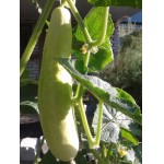Получен из Болгарии, Китайский подтип. Чудо сорт, один из лучших, не болеющий никакими болезнями огурцов. Плодоносит круглогодично, наращивая и без того высокий урожай. . Растение среднеспелое, вступает в плодоношение на 50-53 день после посева. Растение сверх мощное – лиана более 4-х м, имеет число побегов первого порядка 3-5, второго 1-2, третьего 1 или вовсе нет. Лист тёмно-зелёный, форма сердцевидно-лопастная, длиной 15-16 см, шириной 18-20 см, с городчатым краем и средне-морщинистой поверхностью светлого цвета. Плоды молочно-белого цвета, длиной 30-35 см, округло-цилиндрической, ровной формы, пока молодые – чуть ребристые, переросшие – цвет плодов становится жёлто-золотистый, идеально гладкий, с редким чёрным опушением. Созревание семенника более 1 месяца, поэтому зеленцы долго висят не перерастая. Вкус плодов изумительный, сладкий душистый, хрустящий. Сорвать и съесть, а также законсервировать можно любого размера, и даже порезанный на кусочки, в закатке остаётся просто великолепного вкуса и не размягчается. Ценность сорта; выращивать можно везде (теплица, открытый грунт, комната, балкон), не поражается никакими болезнями. Хорошо себя чувствует в жару и холод, в дождь. Очень вкусен, урожаен, неприхотлив в выращивании, только требует высоких сетчатых шпалер.