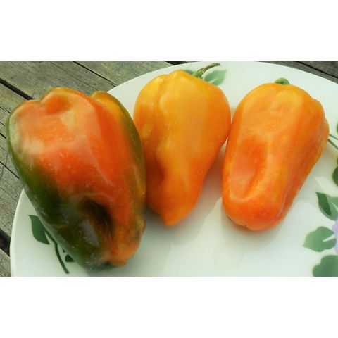 Урожайный и красивый любительский коллекционный сорт с вкусными и сочными плодами «богатырского» размера. Скороспелый, первый урожай снимают уже на 110-120 день после появления всходов. Растение штамбовое, сомкнутое, высотой 70-80 см. Плоды пониклые, кубовидно - трапецевидной формы, 3х-4х дольчатые, размером 11х15см, глянцевые, в технической спелости зеленые, в биологической - желтые.Толщина стенки 6-7 мм. Массой 300-350 г. Мякоть сладкая, сочная, очень вкусная. Рекомендуется для использования в свежем виде, маринования и приготовления лечо и соусов. Хорошо хранятся продолжительное время. Сорт неприхотливый, засухоустойчивый, жаростойкий. Особенность сорта в том, что завязывает плоды при широком диапазоне температур и в любых погодных условиях дает хороший урожай. Адаптирован к перепадам температур.