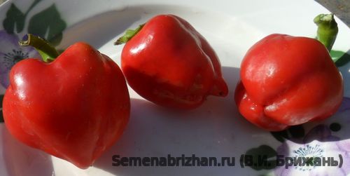 Коллекционный высокоурожайный сорт любительской селекции из Болгарии. Раннеспелый сорт. Число дней от всходов до первого сбора 110-115. Плоды сердцевидно-округлые, рекордно мясистые, с толщиной стенки 10 мм, с виду сильно напоминающие упругие спелые помидоры. Каждый из этих тяжёлых «помидорчиков» обладает брызжуще-сочной мякотью, гладкие, не большого размера, расположение на кусте пониклое. В фазе технической спелости светло-желтые, в биологической спелости красные. Средняя масса плода 35-85 г. Вкусовые и технологические качества высокие, аромат сильный, кожица нежная. Сорт устойчив к вертициллёзному увяданию. Использование: для свежего потребления, консервирования, идеально подходит для фарширования. Плоды отлично переносят дальние перевозки и продолжительное хранение.