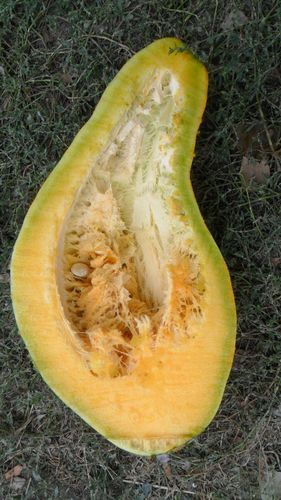 Фруктово-сладкое мясо, одно из лучших для запекания и супов. Удобный американский сорт, родственный Pink Jumbo Banana. Плоды в основном имеют форму банана и сужаются к концу со стороны цветка. Форма плода: продолговатая, банановая, со стороны цветка за...