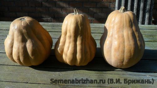 Растение мощное, хорошо сопротивляется болезням и завязывает плоды при прохладной температуре. От полных всходов до технической спелости плодов 45-50 дней. А до полной спелости - 95 дней. Очень пластичный сорт мускатной тыквы с крупными чалмовидными, сегментированными, гладкими плодами отличного качества до 3-х кг. Мякоть темно-оранжевая, толстая, хрустящая, средней плотности и сочности. Вкусовые качества хорошие. Отличается повышенным содержанием каротина и сухих веществ. Отличный вкус мякоти с высоким содержанием сахара. До 3-5 плодов на растении, вес плода до 2-3 кг. Густота посадки на 1м2 — 1 растение. Общая устойчивость к болезням хорошая. Идеально подходит на переработку. Плоды транспортабельные, лежкие. Относительно устойчив к засухе и пониженным температурам.