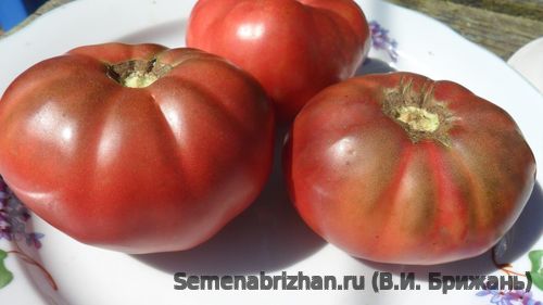 Американская семейная реликвия. Среднеспелый, высокоурожайный сорт, плодоносит с середины сезона до первого мороза. Кусты хорошо облиственные, высота их 1,5 м и более. Листья обыкновенные. Плоды темно-красные с зелеными и фиолетово-пурпурными плечами, плоско-округлые и лодкообразные, слега ребристые, мясистые. Масса плодов 160 - 250 г. Мякоть плотная, мясистая, сладкая, сочная, пряная, вкусная, с приятным ароматом. Чем больше солнца и тепла, тем насыщеннее будет вкус и ярче краски помидоров.