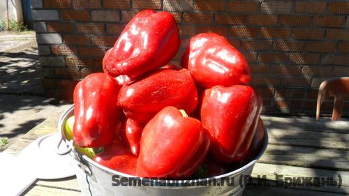 Высокоурожайный коллекционный среднеспелый сорт. Для выращивания в открытом грунте и под пленочными укрытиями. Период от всходов до технической спелости 110-115 дней. Растения высотой 25-30см, штамбовые, компактные, букетного типа, 2-3-х ярусные, малооблиственные. Листья темно-зеленые, удленено-яйцевидной формы, с длинным черешком. Ветви укорочены, с очень короткими междоузлиями, поэтому плоды располагаются кучно, как правило, по 2-3 из одной пазушной почки. Часто плоды располагаются прямо на главном стебле. Расположение плодов в основном пониклое. Такое компактное строение растений позволяет загущать посадки до 200шт. на 1га. Плоды конусовидные, широкие, 2-3-х камерные, с гладкой поверхностью, в основном тупоконечные. Окраска плодов в технической спелости - салатная, в биологической темно-красная. Масса плода 100-200г. Толщина мякоти околоплодника 5-6мм. Мякоть хрустящая, плотная,сладкая. Сладкие, крепкие, сочные перцы можно употреблять сырыми, жареными, приготовленными на пару, обжаренными в ломтиках и подаваемыми с крупой, рисом, пастой и мясом. Высокая лежкость и траспортабельность плодов. Выносив к вертициллезному увяданию. Потенциальная урожайность 40-70т/га. Предназначен для использования плодов в фазе технической и биологической спелости в консервной промышленности и домашней кулинарии. Хорошо переносит неблагоприятные погодные условия.