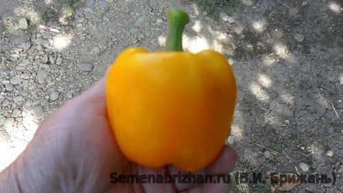 Коллекционный удивительный по красоте перец родом из Италии. Среднеранний (105-115 дней) сорт. Подходит для возделывания в регионах с разным климатом. Овощ высаживают в тепличных и неукрывных грядках. Аккуратные кусты отличаются небольшой длиной побегов (до 50–60 см). Листья средние по величине, тёмно-зелёного цвета, характеризуются слабой морщинистостью. Для перца характерен детерминантный рост, умеренная ветвистость, одновременно завязывают 6-8 плодов. Плоды кубовидные, длиной 14-15 см, диаметр — 5–8 см., блочные, разделены на 3-4 доли, массой 200-250 гр. толщина стенки до 5-7 мм. Мякоть очень сочная, хрустящая, сладкая и ароматная. Этот сорт настоящий оригинал болгарских перцев. Меняет окрашивание по фазам, созревание начинается от светло-желтого до оранжевого цвета. Плоды с нежным вкусом и сильным ароматом, в кулинарии их используют для приготовления салатов, овощного рагу, фарширования, консервирования, запекания.Используется для потребления в свежем виде, не заменим для домашней кулинарии и консервирования. Хорошо подходят для свежего употребления, запекания на гриле. Отлично подходит для жарки. И для пиццы. И для бутербродов. И в консервированном виде тоже изумительный. А еще их фаршируют. Устойчив к перепадам температур, болезням. Урожайность высокая.