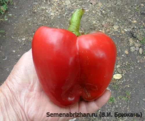 • Коллекционный сорт сладкого перца,для выращивания в открытом грунте и под пленочными укрытиями. Рекомендуется для использования в свежем виде, в домашней кулинарии и для консервирования. Среднеспелый. Период от полых всходов до технической спелости плодов 118-125 дней. Растение штамбовое, средней высоты. Лист среднего размера, зеленый. Плод пониклый, призмовидный, гладкий, глянцевый, в технической спелости светло-зеленый, в биологической - красный. Число гнезд 2-3. Толщина стенки плода 5,5-5,8 мм (до 8,0 мм). Консистенция мякоти малосочная. Кожица грубая. Масса плода 100-150 гр. Вкусовые качества хорошие. Аромат слабый. Устойчив к вертициллезному увяданию. Ценность сорта: высокая урожайность, толстостенность, высокое качество консервированной продукции, устойчивость к вертициллезному увяданию.