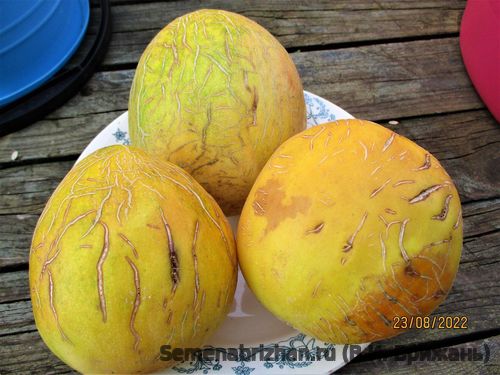 • Новый сорт дыни не оставит равнодушным ни одного гурмана! Сочная, плотная и ароматная мякоть оранжевого оттенка просто тает во рту! Вкус очень сладкий, освежающий. Сорт среднеспелый – период от посева до созревания первого плода составляет около 90 дней. Отличается высокой устойчивостью к заболеваниям и ожогам, адаптированностью к перепадам температур и великолепной транспортабельностью. Масса дыни достигает 1,5-2,5 кг. Плоды отлично хранятся, не утрачивая вкуса и аромата. Нарезанная аккуратными кубиками дыня станет неповторимым украшением фруктовых салатов и коктейлей.