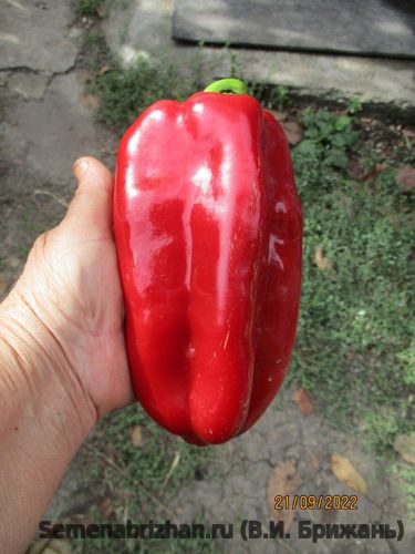 Красивый, крупноплодный, коллекционный сорт перца из Сербии, с оригинальной насыщенной окраской плодов. Раннеспелый 90-115 дней. Растение мощное, высотой 60-65 см.,сомкнутое, хорошо облиственное, благодаря чему плоды защищены от солнечных ожогов. Листовая пластинка крупная, зеленая, среднеморщинистая. Плод пониклый, цилиндрически-призмовидный, длиной 18-24 см, в диаметре 8-10 см, массой 250-350 г, гладкие, блестящие, с легка ребристые, с толстыми стенками. Толщина мякоти - 5,5-6,5 мм. Число камер - 3-4. Окраска плодов в технической спелости изумрудно-зелёная, в биологической насыщенно ярко-красная. Мякоть хрустящая, нежная, сочная, с приятным сладким вкусом и ароматом. Вкусовая оценка отличная. Товарная урожайность - 3,92-4,62 кг/кв. м. Крупные, сладкие перцы украсят праздничные столы, идеально подойдут для фарширования, заморозки и приготовления лечо. При термической обработке сохраняет сочный красный цвет. Устойчив к основным заболеваниям. Урожайность товарных плодов 8 кг/м2.