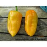 • Красивый, крупноплодный, коллекционный сорт перца из Сербии, с оригинальной насыщенной окраской плодов. Раннеспелый 90-115 дней. Растение средней высоты - высокое, зонтичного типа. Листовая пластинка средняя, темно-зеленая, слабоморщинистая. Положение плодов полупониклое.  Плод прямоугольной формы, чуть сдавлена с боков, средней длины, глянцевый. Окраска плода в технической спелости зеленая, в биологической - темно-жёлтая. Плодоножка слабо вдавлена в плод. Средняя масса плода - 193-205 гр. толщина стенок - 9,0 мм, число камер - 2-3. Окраска плода в технической спелости темно-зеленая, в биологической - желтая. Мякоть хрустящая, нежная, сочная, с приятным сладким вкусом и ароматом. Вкусовая оценка отличная. Товарная урожайность - 3,92-4,62 кг/кв. м. Крупные, сладкие перцы украсят праздничные столы, идеально подойдут для фарширования, заморозки и приготовления лечо. При термической обработке сохраняет сочный жёлтый цвет. Устойчив к основным заболеваниям. Урожайность товарных плодов 8 кг/м2.