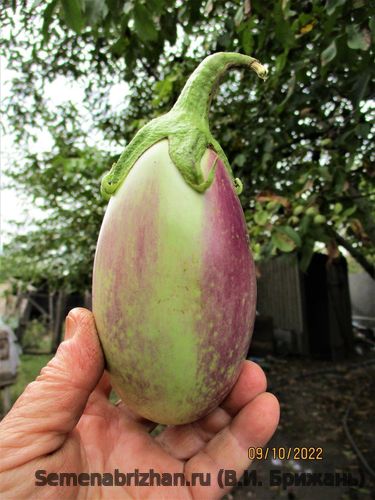 Очень редкий коллекционный сорт, красивый и съедобный полосатый баклажан из Италии, выращиваемый в долинах поселениях Апеннинских гор. Ранний (85 дней). Куст до 50 см, компактный. Обильные урожаи каплевидных плодов, размером 15Х7 см, в технической спелости - пурпурно-зеленые с пурпурными прожилками и пятнами, при созревании становятся многоцветные: пурпурного сиренево-розового с лавандовыми полосами цвета. Мякоть светлая, нежная, вкусная. Лучше всего есть маленькими, когда плоды около 8 см. в длину. Используют в домашней кулинарии, для приготовления икры, маринования и консервирования. Ценность сорта: высокая урожайность, отличный вкус и оригинальность окраски плодов.