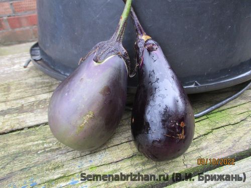 Происхождение сорта: Япония. Очень декоративный раннеспелый сорт. Срок созревания: 70-90 дней. Высота растения: до 80 см. Куст компактный. Цветы очень крупные, а плоды небольшие, каплевидные, а по размеру и форме напоминающие гусиное яйцо, длиной до 15 см и толщиной не более 5,5 см., средней массой 200-350 грамм. Цвет плода: тёмно-фиолетовый. Мякоть белая, долго не темнеет, очень нежная, деликатесного вкуса. Очень порадовал этот сорт, плоды удобны для консервирования целыми в банках и запекания, режем их пополам и начиняем любым наполнителем, мы просто запекали половинки, залив растительными сливками или соусом и присыпав специями.Сорт очень урожайный, плодоносит до заморозков.