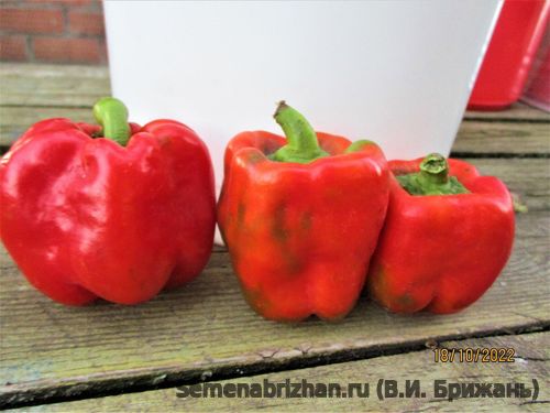 Коллекционный высокоурожайный сорт любительской селекции из Италии. Раннеспелый, урожайный сорт с огромными кубовидными плодами. Срок вегетации до технической зрелости 90–100 дней. Растения невысокие, 50–60 см. Куст очень крепкий, но все равно может сломаться под тяжестью урожая, поэтому желательна подвязка. На одном растении может сразу созревать 6-8 плодов массой до 300 г и более. Перцы кубовидные, 3-4 камерные, в технической спелости темно-зеленые, в биологической - темно-красные, сочного вкуса, с высоким содержанием витамина C. Толщина стенки 7-10 мм. Урожайность 18-24 кг. с м. кв. - в зимних теплицах. Обладает очень высокими товарными характеристиками. Для теплиц и открытого грунта. Вкус сладкий с небольшой кислинкой. Хорошо подходит для консервирования, фарширования и для заморозки. Для увеличения урожайности рекомендуется соблюдать режим минерального питания и полива, своевременно производить сбор плодов, достигших технической зрелости. В пакете 20 шт. семян.