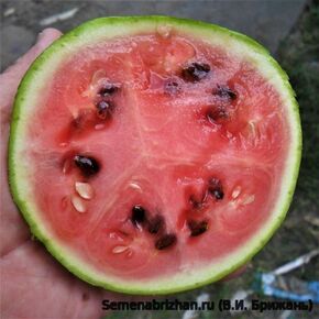 Старинный коллекционный сорт из штата Миссури, США. Сорт раннеспелый, от всходов до начала созревания 60-63 дня. Растение средней мощности, среднеплетистое. Длина главной плети менее 2-х метров. Стебель с редким опушением. Лист сизо-зеленого цвета, рассеченный, доли средней величины. Лопасти основания листа не доходят друг до друга. Завязь шаровидная с редким опушением. Плоды шарообразной формы, поверхность гладкая, тёмно-зеленая, без сетки с лёгким восковым налётом. Рисунок — широкие, чёрно-зеленые, фестончатые полосы. Кора не толстая – всего 1–1,5 см,средняя, кожистая, на разрезе светло-зеленая. Мякоть интенсивно-красная, зернистая, нежная, сладкая. Вес плодов: 1.5-3.5 кг. Вкусовые качества отличные. Тончайшая корочка, ярко-красная медовая мякоть. Назначение – рекомендуется для употребления «с грядки», приготовления сочных цукатов и лечебного арбузного меда, для засолки и маринования. Этот арбуз ценится садоводами за необычный светлый вид коры и классический «сахарный» вкус мякоти, напоминающий десерт. Способность завязывать плоды даже при низких температурах и в условиях недостатка освещения. Совершенно неприхотлив. Очень ранний сорт с высоким содержанием сахаров. Предназначен для выращивания в пленочных теплицах и в открытом грунте.Сорт относительно засухоустойчив, слабо восприимчив к мучнистой росе, антракнозу и фузариозу. Сорт считается неприхотливым, адаптированным к непростым погодным условиям.В пакете 5 шт. семян.