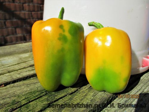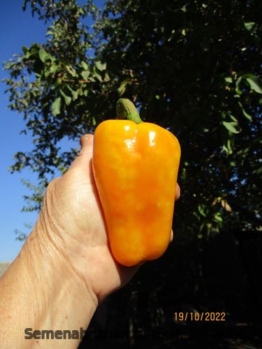 Польский коммерческий сорт сладкого перца. Среднеранний, от всходов до технической спелости 100 -115 дней. Растение компактное, высотой 60-70 см и диаметром 30-50 см, обильно плодоносит в течение сезона. Плоды имеют форму усеченной призмы размером 10-14х6-8 см; стенка сочная, мясистая, толщиной 7-8 мм. Окраска плода в технической стадии - светло-зеленая, в биологической - желто-оранжевого цвета. Плоды достигают 200-250 грамм. Очень сладкий и сочный, с насыщенным цитрусовым ароматом. Вкусовые качества плодов достойны самой высокой оценки! Плоды используют в свежем виде, запекают на гриле, фаршируют, замораживают, они хороши для любых видов консервации. В культивации неприхотлив, хорошо переносит экстремально высокие температуры. Лёжкость высокая. Сорт очень урожайный — до 14 крупных плодов на растении. Хорошо устойчив к тобамовирусам и вирусу бронзовой пятнистости. Рекомендуется для выращивания в открытом грунте и пленочных теплицах.