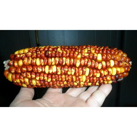 Коллекционная реликвия из Северной Америки. Очень древний сорт бронзовой кукурузы, которую выращивали индейцы более 2000 лет назад и сохранили до наших дней. Высокорослое растение,180-200 см, высота заложения нижнего початка 48-66 см. формирует один крупный и два средних початка в зависимости от агротехники. Початок округло-слабоконической формы, длиной 15-19 см. Масса 230-260 г. Большая часть зёрен жёлтого цвета с карамельно-красными полосами и разводами, также в початке могут иногда присутствовать зёрна других цветов. Вот уж поистине диковинка! Этот сорт к тому же устойчив к капризам погоды и болезням. Вкус цветного початка такой же яркий, как и цвет. Среднеспелый (90-95 дней от всходов до технической спелости) сорт. Рекомендуется для употребления в отварном виде и для консервирования. Урожайность початков до 7,3 кг/м2.