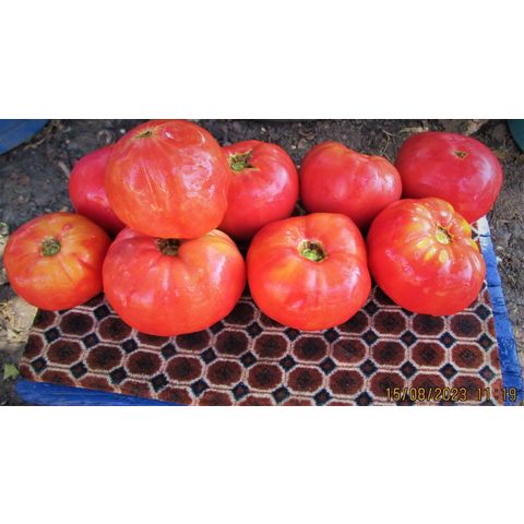 Томат Бурлак Минусинский – хорошо известный сорт народной селекции из Минусинска (серия Минусинские). Плоды практически лишены недостатков, а также обладают устойчивостью к суровым климатическим условиям. Данный сорт является ранним. От всходов до плодоношения 80-100 дней. Томат Бурлак Минусинский относится к кистевым сортам с индетерминантным типом роста. Это высокорослое растение, высота которого может составлять до 180 см. Листья картофельного типа и просто гигантского размера, куст мощный. Сорт с потрясающей урожайностью и выносливостью. Обильно плодоносит как в теплице, так и в открытом грунте. Один из лучших раннеспелых минусинских сортов томатов. Главной особенностью данного сорта является отсутствие рассечений на листовых пластинах, поэтому внешне они имеют сходство с листьями картофеля. Соцветия простые. Среди главных преимуществ этого томата огородники выделяют высокую урожайность, крупноплодность, товарный вид плодов, долгие сроки их хранения, устойчивость к растрескиванию. Кроме того, многим нравится раннеспелость и то, что растение радует хорошим плодоношением, независимо от погоды и уровня освещения. Что же касается недостатков, то их нет, если не считать того, что кусты нуждаются в формировании, подвязке и пасынковании (не подходит для «ленивых» и начинающих огородников). Плоды довольно крупные, массой от 300 до 700 г (зависит от погодных условий и правил выращивания), окрашены в жёлтовато-малиново-розовый цвет. Томаты высоко-округлой формы с наворотами сверху (волнообразными неровностями), имеется слабая ребристость, полоски отсутствуют. Плоды формируются в кисти по 6-8 штук. Мякоть «арбузного» типа, зернистая, мясистая. Томат Бурлак Минусинский нравится многим своим сладким вкусом. Плоды можно использовать как в свежем виде, так и для приготовления томатной пасты, кетчупа и сока.Многие огородники снимают плоды в состоянии технической спелости, так как они имеют свойство хорошо дозревать в помещении. При правильном соблюдении сроков посадки и условий ухода в среднем с одного растения можно собрать 5 кг вкусных плодов.