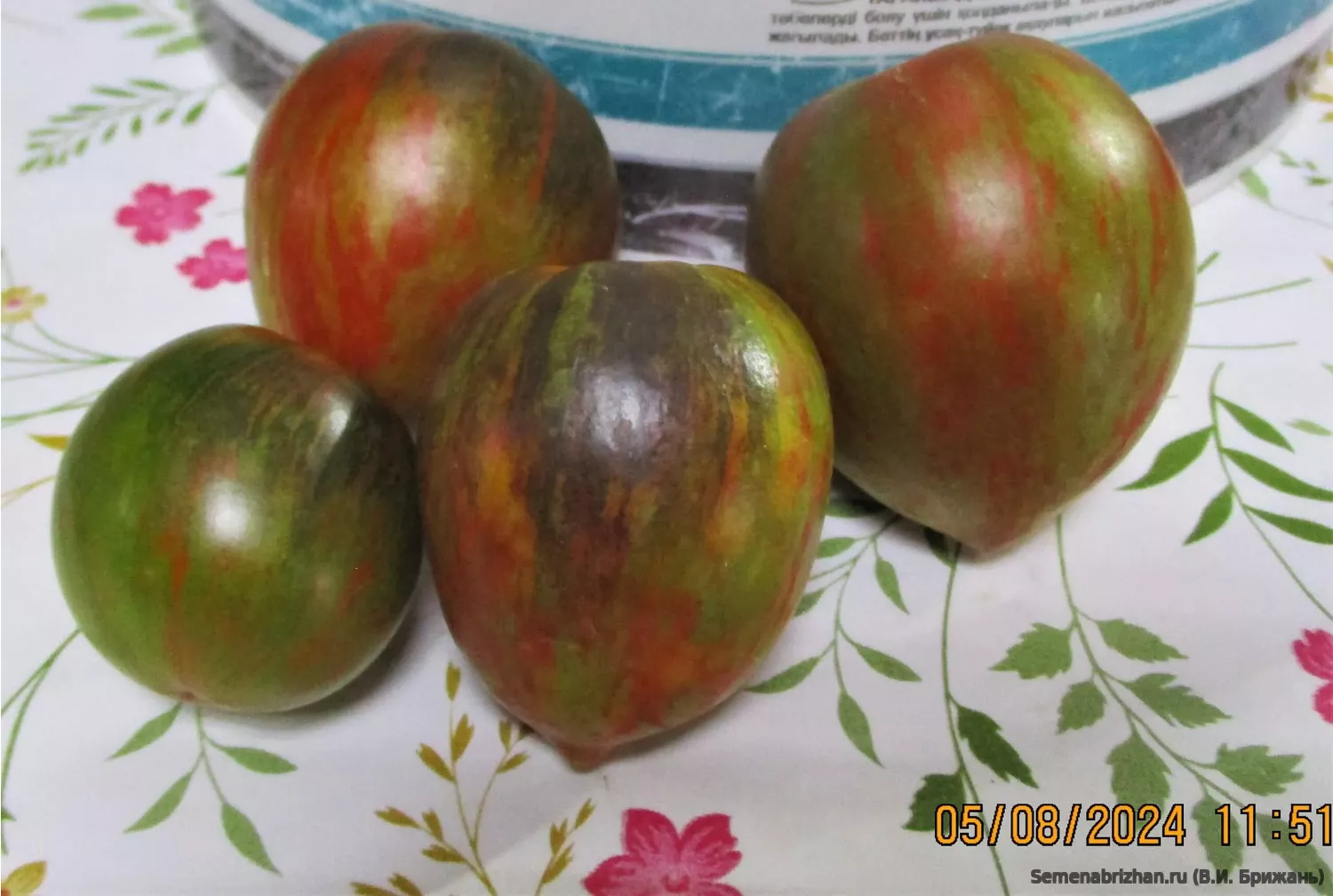 Новинка селекции от Бреда Гейца США. Среднеспелый (110 – 115 дней); для выращивания в теплицах и под пленочным укрытием, в условиях мягкого климата возможно выращивание в открытом грунте. Кусты высокие, достигают 160 сантиметров, формируются в 1-2 стебля; сорт с длительной урожайностью. Не перерастает в рассаде. Устойчив к неблагоприятной погоде и заболеваниям. Плоды красиво окрашены с синими плечиками, очень сладкие и вкусные. Этот сорт объединяет в себе невероятно сладкий вкус, длительное плодоношение и необычайно щедрую урожайность. На вид ошеломляющий, при полном созревании имеет широкий спектр цветов: зелёных, красных и коричневых. Окрас делает его поразительно красочным - лавандовые оттенки на кожице выражены солнечным светом и придают каждому плоду свой уникальный рисунок в зависимости от того, насколько на него попадают солнечные лучи. Это делает процесс выращивания визуально захватывающим. Потрясающе красивый сорт! Размер томатов колеблется от крупных черри до размера сливки. Плоды хорошо держатся на кусте и отлично транспортируются, делая этот удивительный сорт хорошим кандидатом для рынка. Томаты необычайно сладки и урожайны! Благодаря хорошим вкусовым характеристикам они подходят не только для консервирования, но и для употребления в свежем виде, для приготовления салатов и гарниров, подойдут также для приготовления соков, соусов.Сорт хорошо завязывает плоды при пониженных температурах.