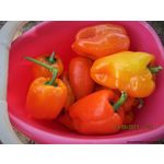 Семейная коллекционная реликвия, любительской селекции из США. Раннеспелый 100-105 дней. Растение высотой 100-150 см, открытого типа, с крупными листьями, формирует одновременно 7-10 плодов. Плоды кубовидно-призмовидные, размером 12х19 см, массой массой 150-300 г. ярко-апельсиновые с золотистыми переливами и с малиновыми разводами. Толщина стенок 0,9 мм. Мякоть сочная плотная, хрустящая со сладким фруктовым послевкусием. Назначение — для свежих салатов, нарезок. Так же ароматные, вкусные и прекрасные и красивые в зимних заготовках, запекают на гриле, фаршируют, замораживают, они хороши для любых видов консервации. Сорт урожайный, устойчивый к болезням, низким температурам и малой освещенности. Не требует особого ухода, не прихотливый.Болезнестойкий высокоурожайный куст, способен дать до 1 ведра красивых, крупных перцев. Для теплиц и ОГ.