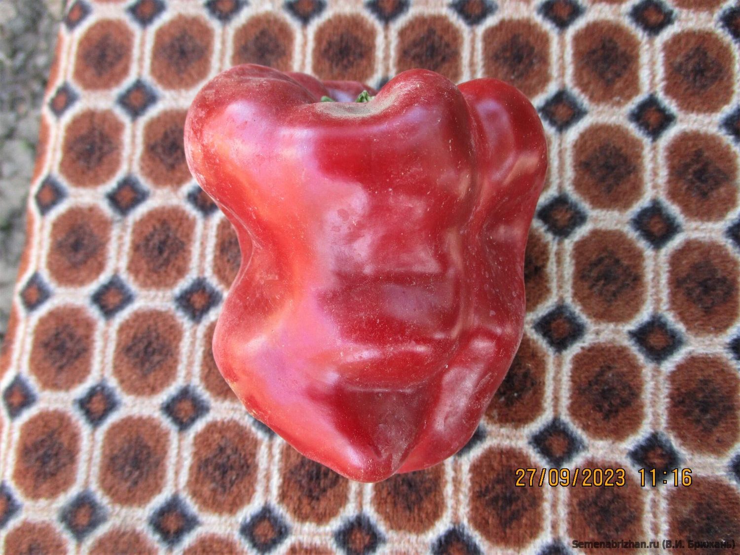 Семейная коллекционная реликвия из Болгарии. Высокоурожайный, раннеспелый и очень сладкий! Супернеприхотливый! Легко переносит жару и засуху! Сорт скороспелый, период от массовых всходов до плодоношения составляет 110-115 дней. Благодаря своей скороспелости и устойчивости к стрессовым факторам среды, сорт может выращиваться как в в защищенном, так и в открытом грунте. Растения полуштамбовые, высотой 50-60 см. с обилием листьев. Листва гладкая, светло-зеленая, ее размер совпадает с размером плодов. На ветках вяжется много плодов: на 1 кусте до 30 штук. Чтобы стебли не ломались под их тяжестью, рекомендовано заранее подвязать куст. Положение плодов на растении пониклое.Плоды малиновые, мясистые, кубовидные, с ребристой поверхностью, массой до 200 гр, , толщина стенок – 8 мм, число гнезд – 4 - 3 - 2,очень ароматные, сочные, сладкие. Великолепный сорт для салатов и фарширования. Цвет плодов от темно-зеленого до тёмно-бордово-малиново-красного! Очень вкусный, нарядный, сочный, сладкий и урожайный, прекрасного вкуса сорт. Его можно использовать для салатов в свежем виде, для запекания и фаршировки, для заморозки, сушки и консервации. Плоды не теряют вкусовых качеств в любом виде.
