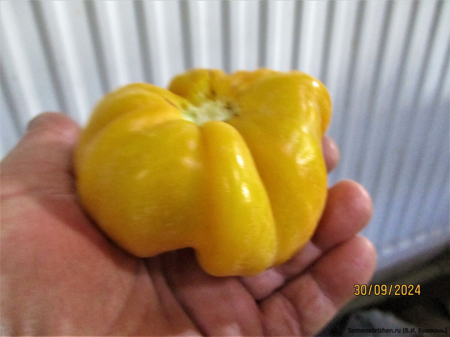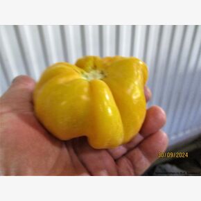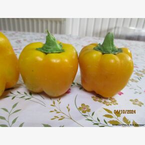 Великолепный коллекционный сорт сладкого перца гогошарного типа, семейная реликвия из Италии. В Европе сорта такого типа называют «Tomatenpaprika» или душистый перец (Пьименто). Срок созревания: 110-120 дней. Высота растения: 60 см. Растение средне-генеративного типа, компактное. Плоды блочные удлиненный, 4-камерные, 10*8,5 см, массой 240-280 г, толщина стенки 8-10 мм. Насыщенный ярко-желтый цвет и высокие вкусовые качества. Мякоть хрустящая и сочная. Хороши в свежем виде и на фаршировку. Наверное один из лучших сортов для обжарки на гриле!!!! Плоды очень хорошо хранятся в холодильнике. Сорт неприхотливый, урожайный. Высокий выход стандартной продукции в течение всего сезона выращивания. Для выращивания в пленочных теплицах, невысоких тоннелях и открытом грунте. Хорошее завязывание плодов в холодных и жарких условиях.Устойчив к тобамовирусам и бронзовой пятнистости. Рекомендуется для выращивания в теплицах и открытом грунте. Сорт устойчив к вирусу табачной мозаики. Характеризуется высоким содержанием сахаров и витаминов. Сорт урожайный, устойчивый к болезням, низким температурам и малой освещенности !!! В пакете 5 шт. семян.
