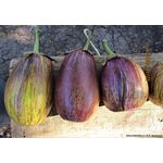 • Новый,коллекционный, раннеспелый сорт, период от всходов до плодоношения 105-117 дней. Предназначен для выращивания в открытом грунте и пленочных укрытиях. Урожайность высокая - 9-10 кг/м2. Растения полураскидистые, высотой 110-120 см. Плоды обратнояйцевидной формы, длиной 15-20 см, диаметром 8-10 см, массой 400-500 гр. (отдельные до 900 г). Их глянцевая фиолетовая кожица покрыта тонкими продольными белыми полосами. Плоды имеют редкую окраску: бело-фиолетовый — в полосочку и отличные вкусовые качества, не горчат. После термической обработки они становятся очень нежными и невероятно вкусными.  Мякоть беловатая, без горечи, отличного вкуса. Рекомендуется для использования в кулинарии, для приготовления икры, консервирования и маринования.