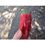 Изысканный коллекционный, национальный сорт из Великобритании. Ранний (70-75 дней) пластичный сладкий перец типа Капия для открытого грунта и пленочных теплиц. Растение среднерослое до 80 см., зонтиковидный куст даёт хорошее укрытие плодов от солнечных ожогов. Плоды крупные, длинные до 20-22 см. коническо-цилиндрические, с острым носиком, массой 300-350 гр, при специальной агротехнике - до 400 гр. трёх дольные, толщина стенки свыше 1 см, размером 10х22 см. Окраска плодов темно-зеленая в тех.спелости и в биологической спелости рубиново-красная. Плоды сладкие, вкусные, очень сочные. В ресторанах эти перцы часто подают жареными или готовят на гриле. Используется для потребления в свежем виде, консервирования, маринования, фарширования, лечо, домашней кулинарии. Также они идеально подходят для приготовления паприки, так как при сушке их аромат усиливается. Сорт урожайный, устойчивый к болезням, низким температурам и малой освещенности. Имеет растянутые период плодоношения (две-три волны урожая). Устойчивость к ВТМО. Устойчив к вирусным болезням. Перец устойчив к вертициллезному увяданию (Va, Vd), вирусу табачной мозаики (ToMV). Преимущество данного сорта: даёт стабильно высокие урожаи крупных плодов красивой формы.