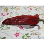 Среднеспелый (110-115 дней) коллекционный, высокоурожайный сорт из Испании, для выращивания в открытом грунте, в теплицах и под пленочными укрытиями. Растение мощное, хорошо облиственное, высотой до 70 см. Незрелые плоды глянцевого ярко-зелёного цвета, при созревании становятся глянцево-ярко-тёмно-красными. Их форма коническая и удлинённая до 10-15 см и больше. В ширину - около 5 см. Жгучесть по шкале Сковилла: 2500-10000 единиц. Отличный сорт острого перца для употребления в свежем виде или для гриля и запекания, в салаты, в соусы, джемы, аджику, цельноплодного консервирования и для сушки. Вкус сладкий, мякоть очень сочная. Сорт очень урожайный, до 1, 2 кг с растения.