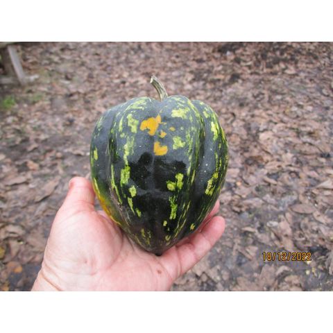 Кустовой, неприхотливый, урожайный, созревает за 50-60 дней. Растение мощное, может содержать одновременно более 10 плодов. Листья крупные, зеленые, декоративные. Цветки крупные, золотисто-желтые. Плоды зеленые с легким оранжевым пятном на бочке и кончике плода, продолговато - округлые или округло-приплюснутые, небольшого размера, мясистые. Мякоть очень вкусная. У зрелой тыковки мякоть светлая, кремовая, хрустящая. Масса плода — 0,3-0,45 кг. Диаметр плодов - 10-15 см. Вкус несколько ореховый, сладковатый, отлично подходит для зажаривания по картофельным рецептам. Тыква, которая может заменить собой картошку! Поэтому готовить ее надо по картофельным, а не тыквенным рецептам. Отлично жарится с луком и солью.Чаще всего я запекаю акорны в духовке прямо с кожурой, фаршируя разными начинками, или жарю на сковороде, как картошку. Еще акорны можно добавлять чищеными кусочками в овощное рагу или суп – вместо картофеля. Тыква менее калорийна, чем картофель.