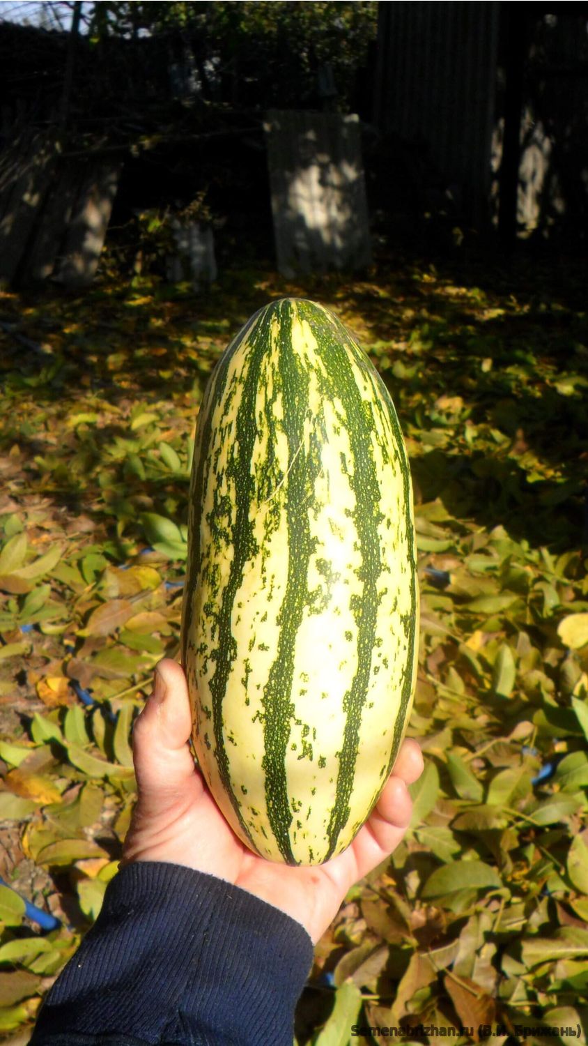 Уникальный кабачок из США. ‘Delicata’, еще один тип зимнего кабачка, был выведен Peter Henderson Company в 1894 году и выращивается по сей день. Растение среднерослое, высотой и шириной до 60 см. Плоды продолговатые, небольшие, средней массой 500 - 800 грамм, белые с темно-зелеными полосами. Мякоть светло-желтая, плотная, пожалуй лучшие кулинарные качества среди зимних кабачков C. pepo. Сорт среднеранний: созревание на 100-105-й день после всходов. Растения сначала производят формы, похожие на кустарник, а затем отрастающие побеги, длина которых достигает 4,5 метра. Великолепно подходит для начинки и выпечки даже сразу после сбора урожая. Благодаря высокому содержанию сахаров кулинарное использование данного сорта просто не ограничено: из неё делают пудинги, торты, пирожные, цукаты. Тем более, что такие необычные плоды являются истинным украшением как огорода так и дома. Отлично хранится до нового сезона, ещё больше накапливая сладость...