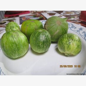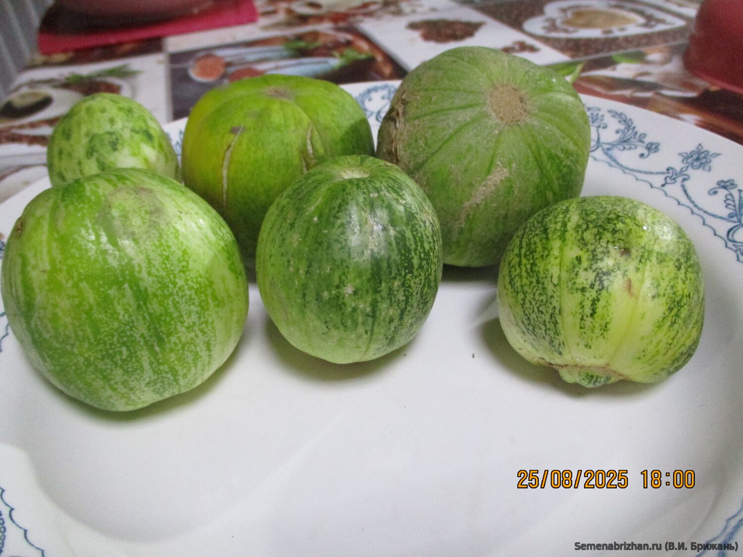 Относится к виду дыня медовая (Var. Inodorus). Иногда её называют "огурдыней", что не совсем верно. Старинный сорт дыни, традиционно выращивается на полях Тулароза на юге Нью-Мексико (США), для местных фермерских рынков. В западных странах её часто называют яблочной дыней. Сорт ультраскороспелый( 50-60дней). За сезон с куста можно собрать 15-20 плодов. Плоды небольшие округлые или каплевидные. Кожура у этой дыни очень тонкая и гладкая, её можно не очищать. В технической спелости - кора светло-зелёного и жёлтого цвета с тёмно-зелеными полосами и пятнами, в биологической - серо-жёлтые с ярко выраженными зелёными полосами и пятнами. Мякоть белая и хрустящая как яблоко, очень сладкая, сочная, медового вкуса с нежным ароматом. Из зрелых плодов получается очень душистое варенье, пастила и повидло, и даже вино, а также другие сладкие, кондитерские изделия. Истинное лакомство для детей и взрослых. Обладает огромной урожайностью. Плоды отлично сохраняют свои товарные качества при хранении и при транспортировке. Холодостойкий, болезнестойкий, засухоустойчивый, высокоурожайный сорт. Урожайность высокая, стойки к заболеваниям и засухе. Плодоносит до заморозков. Болезнями и вредителями поражается слабо. В пакете 5 шт. семян.