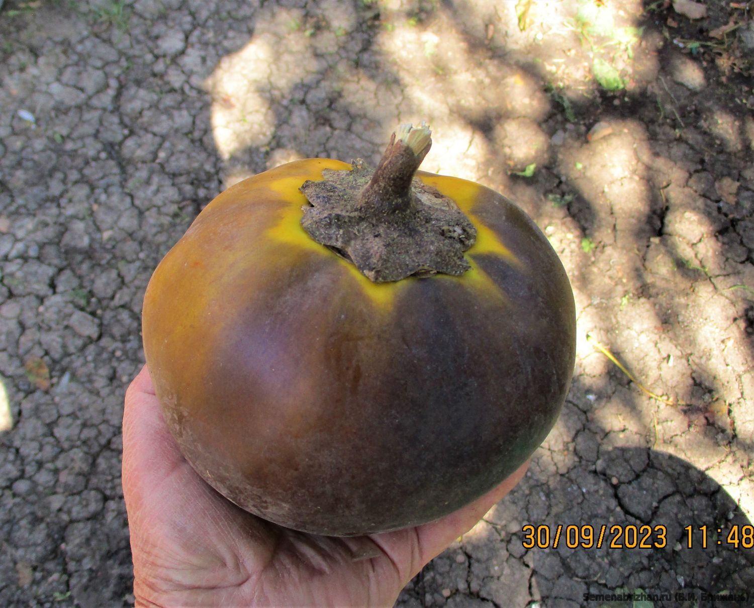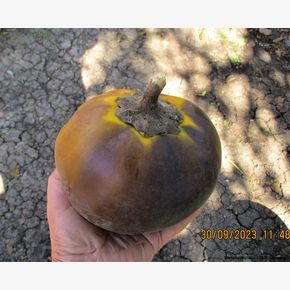 Очень красивый коллекционный сорт баклажана с оригинальными, ярко-фиолетовыми плодами для выращивания в теплицах и открытом грунте. Раннеспелый, крупноплодный сорт с превосходными вкусовыми характеристиками. Период от появления всходов до созревания первых плодов 110-115 дней. Растения мощные, средней высотой 50-60 см и до 1 м в условиях теплицы. полураскидистые. Стебли и листья с антоциановой окраской. Плоды округлые, диаметром 15–18 см., массой 350-380 г, с антоциановой окраской чашечки. Сорт отзывчив на качество ухода. При хорошей агротехнике и регулировании числа завязей на растении масса плода может достигнуть 800 г. Мякоть белая, без горечи, семян мало. Великолепно подходит для переработки. А плоды, сорванные маленькими, – для цельноплодного запекания и приготовления на пару. Рекомендуется для всех видов кулинарной переработки. Плоды обладают высокими вкусовыми характеристиками, баклажаны лучше всего подходят для приготовленных блюд, таких как приготовление на гриле, запекание, пассерование, жарка во фритюре, тушение и маринование. Отличается дружным и продолжительным плодообразованием, не требует больших затрат труда по уходу. Предназначен для защищенного грунта (всех типов теплиц), а также для открытого грунта. Сорт достаточно устойчив к основным заболеваниям. Урожайность до 5 кг/м2. Ценность сорта: стабильное плодоношение, плоды пригодны для длительного хранения и транспортировки, устойчивость к комплексу заболеваний, выносливость к холоду, изумительные вкусовые качества, пригодность для быстрой обработки. Характеризуется дружным и продолжительным плодообразованием, устойчивостью к болезням и универсальным использованием. Посев на рассаду проводят в конце февраля, пикировку – в фазе семядолей. К моменту высадки рассада должна быть в фазе бутонизации, иметь 6-10 настоящих листьев. Высадка рассады – в конце мая. Формировка: удаление всех боковых побегов и листьев до первой развилки. В теплице растения подвязывают и формируют в 2-3 стебля. Удаляют пасынки и побеги, направленные внутрь куста, а позже – листья на штамбе до первой развилки.К концу июля на растении оставляют 5-6 самых крупных завязей, другие цветы и завязи удаляют. Схема посадки 40х60 см. Товарная урожайность до 5,5 кг/м2. Сорт очень урожайный, плодоносит до заморозков, хорошо растет в доме на окне. В пакете 20 шт. семян.