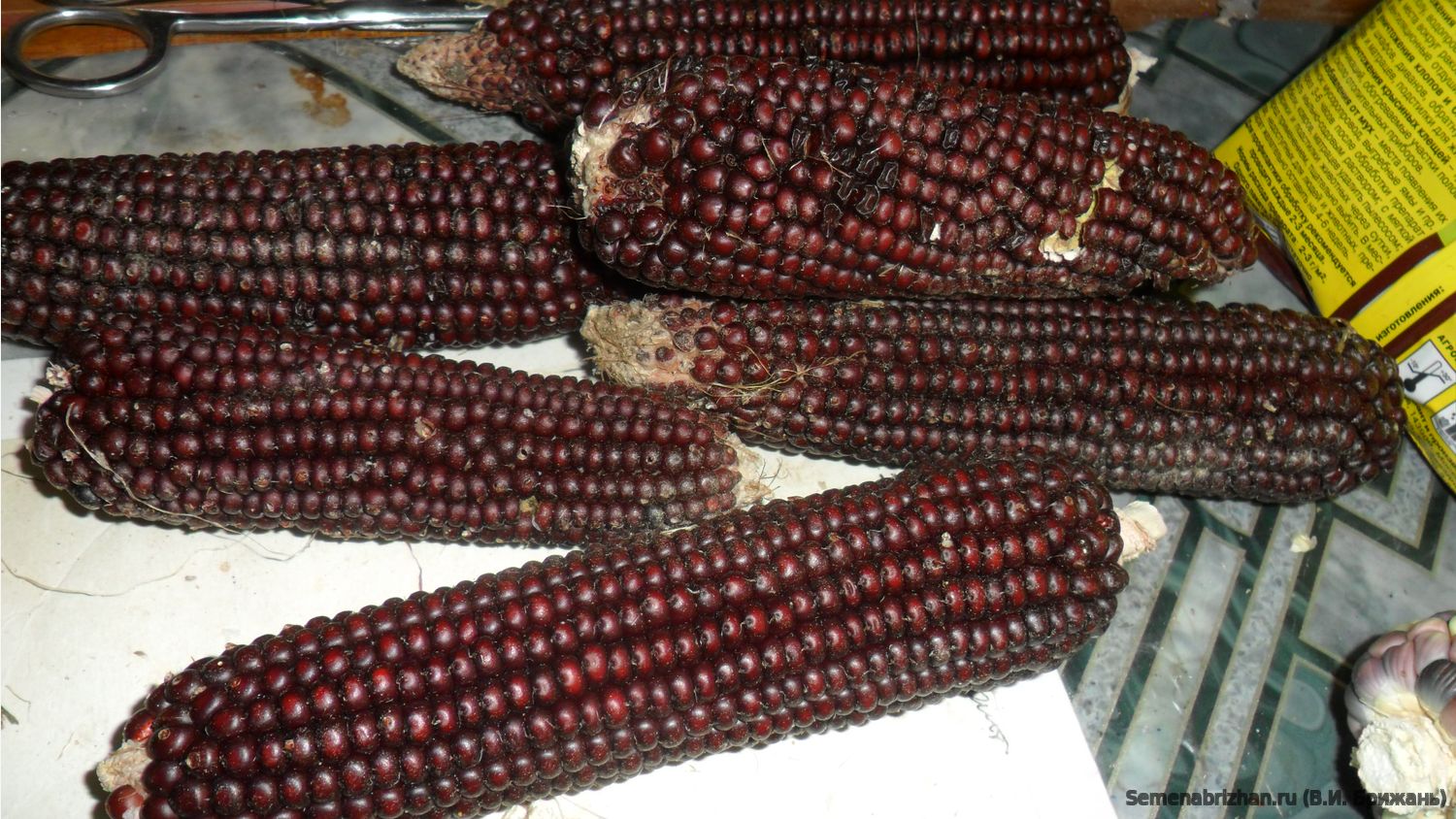Этот сорт происходит из штата Вирджиния в США и известен он с 1845г. Удивительные, бордовые с черно-красным переливом, початки и длинные стебли прославили его по всему миру. Очень редкий сорт, зерна очень темные, черного цвета, кочерыжки черные. Раннеспелая, до 68 дней. Растение высотой до 180 см. Стебли красные, а листья зеленые, очень ранние, супер сладкие. Початки большие, плотные, округло-цилиндрические, длиной до 27 см. Зерно бордово-чёрно-шоколадно-красное, очень сладкое. За тёмно-красный цвет початков отвечает большое количество антоцианов―антиоксидантов, замедляющих старение и предотвращающих развитие многих тяжёлых заболеваний. Початки в молочной спелости можно есть в свежем виде, зерно очень вкусное, нежное и сладкое. А также отваривать и использовать в кулинарии. Кочаны данного сорта имеют чудесные вкусовые качества в отваренном виде, а чтобы их законсервировать или заморозить, желательно использовать молодые молочно-восковой спелости зерна. Вареная кукуруза просто тает во рту. Прекрасное лакомство для детей и взрослых. Рекомендуется для употребления в свежем виде, консервирования и заморозки. Садоводы используют Мясника для украшения своих участков. Из этой кукурузы делают муку, кашу или варят в початках. Вкусная вареная, также попробуйте ее законсервировать, удивите гостей салатом, в котором вместо привычной кукурузы будет красная. Очень редкий сорт, рекомендую посадить. Высокий урожай – 2-3 початка на одном растении. 10шт. - 95руб.