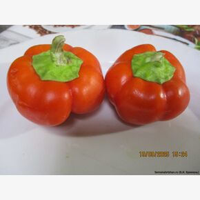 Вид: Capsicum annuum Gogoscharii Group. Происхождение сорта: Венгрия. Срок созревания: 95-100 дней. Высота растения: 60 см. Форма плода: приплюснуто-шаровидная. Цвет плода: тёмно-красный. Вес плода: 200-250 гр. Толщина стенки плода: 7-8 мм. Низкорослый раннеспелый урожайный сорт сладкого перца. Плоды округлые, приплюснутые, сильноребристые. При полном созревании тёмно-красные. Стенки толстые, мясистые, сочные, хрустящие, сладкие и ароматные. Плоды идеальны для фаршировки и маринования. Из ни также получается ароматная сладкая паприка. Мякоть сладкая, сочная, хрустящая и ароматная. Плоды используют в домашней кулинарии, в свежем виде, запекают на гриле, фаршируют, замораживают, они хороши для любых видов консервации (маринования и приготовления лечо). Сорт отличается хорошей завязываемостью в стрессовых условиях, причем устойчивость проявляется как к пониженным, так и повышенным температурам. Характеризуется устойчивостью к вершинной гнили. Сорт урожайный, устойчивый к болезням, низким температурам и малой освещенности. В пакете 5 шт. семян.