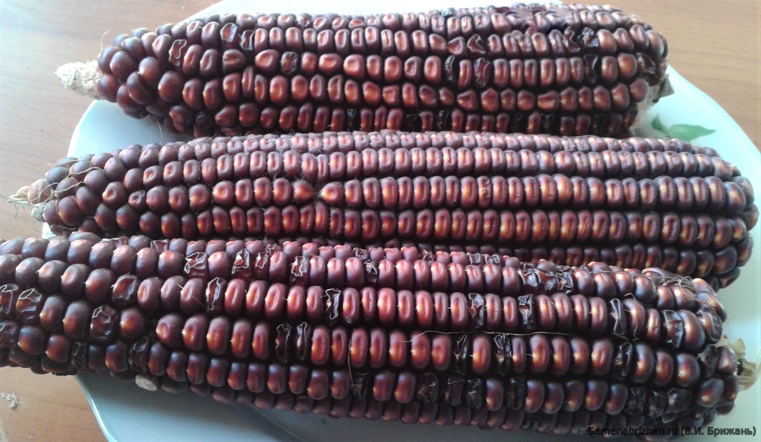 Очень редкий, коллекционный и вкусный ранний (до 80 дней) сорт родом из Севера России, с необыкновенной окраской зёрен. Настоящий гигант среди сахарных сортов кукурузы, вырастающий почти до 3 метров в высоту с небольшим количеством листьев, отличается крупными зёрнами, интенсивно ярко сиренево-перламутрово-гранатово-красного цвета, которые соответствуют всем нормам. Под стать растению и початки – до 27 см длины, плотные, округло-цилиндрические, 5 см диаметра и 19 рядов зерновки. Масса одного перламутрово-гранатово-красного цвета початка с ровными крупными зёрнами достигает 350 грамм. Имеет насыщенный вкус, очень вкусна в варёном виде, содержит большое количество антоцианов и других полезных веществ! Считается очень полезной при диабете, атеросклерозе, ожирении, она укрепляет капилляры, улучшает обмен веществ, регулирует содержание сахара в крови, а также борется с опухолями. Початки в молочной спелости можно есть в свежем виде, зерно очень вкусное, нежное и сладкое. А также отваривать и использовать в кулинарии. Кочаны данного сорта имеют чудесные вкусовые качества в отваренном виде, а чтобы их законсервировать или заморозить, желательно использовать молодые молочно-восковой спелости зерна. Вареная кукуруза просто тает во рту. Прекрасное лакомство для детей и взрослых. Сорт редко поражается болезнями и хорошо подходит для любой обработки. Рекомендуется для употребления в свежем и вареном виде, для консервирования и заморозки. Зрелые ядра отлично подходят для обжаривания, измельчения в особую муку, приготовления замечательной мамалыги, очень хорошей крупы и ароматного кукурузного хлеба с высоким содержанием антиоксидантов. Высокий урожай – 2-3 початка на одном растении. 10шт. - 15руб.