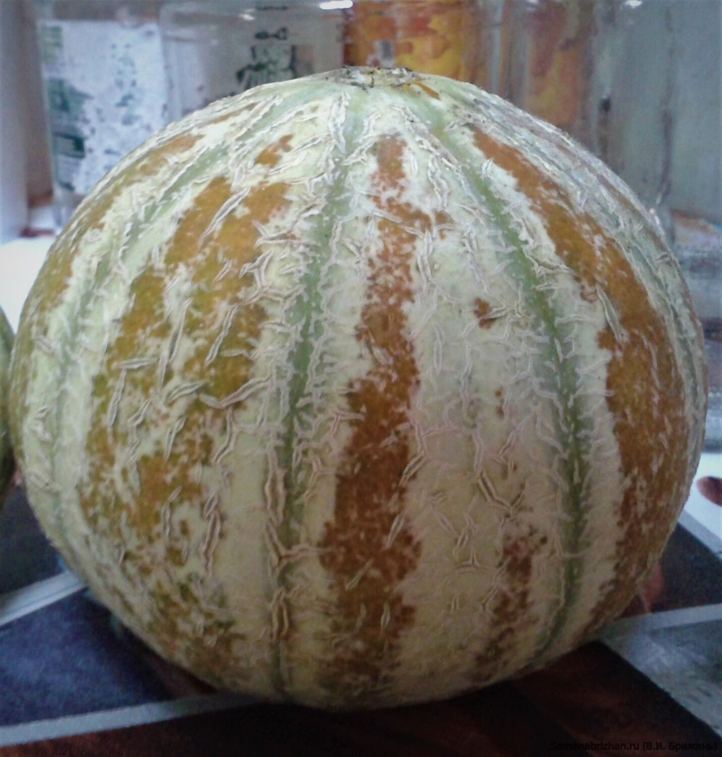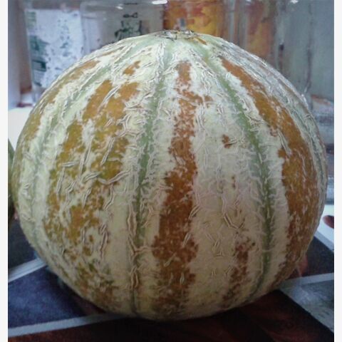 Сорт родом из Индии. Растение с плетистым ростом обладает густыми и крепкими побегами. Культура имеет множество характерных особенностей. Ветви покрыты средними по размеру листьями с небольшой расщеплённостью. На побегах формируется множество тёмно-зелёных бутонов, которые расцветают в красивые жёлтые цветки. Плоды имеют средний размер и округлую конфигурацию. Необычайно красивые плоды с яркими терракотовыми и красными полосками, коричневого и зеленого цвета, очень ароматные. Масса плодов от 300 - 800 г. Мякоть вкусная,зеленоватая, слегка мускусная, сладкая, напоминает смесь ханидью и канталупы. Концентрация сахара составляет до 8%. Употребляется в свежем виде, подходит для консервирования, заморозки, сушки. Из неё получаются вкусные цукаты и маринады, фруктовые салаты, закуски и десерты. Очень урожайный раннеспелый сорт, устойчив к мучнистой росе, плодоносит до заморозков.С момента всходов до полной зрелости проходит 55-76 дней. Всё зависит от погодных условий и методов выращивания. На одном кусте одновременно могут поспевать до 5 плодов. В упаковке 5 семян.