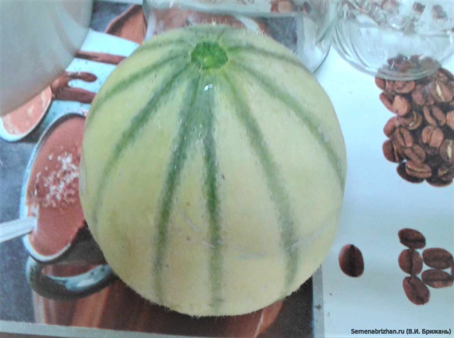 Французский коллекционный сорт с небольшими плодами, очень сладкими и ароматными. Сложный замечательный вкус с нотками карамели. Растение редкое. Плоды маленькие, весом всего 400-800 грамм, приплюснуто-округлые, ребристые, с тонкой, бело-зеленой кожицей. Вкус мякоти хрустящий, сладкий. Концентрация сахара составляет до 8%. Употребляется в свежем виде, подходит для консервирования, заморозки, сушки. Из неё получаются вкусные цукаты и маринады, фруктовые салаты, закуски и десерты. Очень урожайный раннеспелый сорт, устойчив к мучнистой росе, хорошо удается даже в неблагоприятную погоду и при коротком лете. С момента всходов до полной зрелости проходит 55-76 дней. Всё зависит от погодных условий и методов выращивания. Сорт легкий в выращивании, плодоносит до заморозков. На одном кусте одновременно могут поспевать до 5 плодов. Лежкость хорошая. В упаковке 5 семян.
