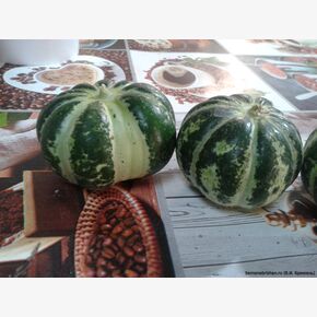 Этот старинный редкий сорт огуречной дыни (огурдыни) происходит из провинции Таранто, в регионе Апулиа, находящегося на юго-востоке Италии. Период созревания: 60-70 дней. Тип растения: Плетистое, среднерослое, урожайное. Плоды шаровидные-приплюснутые (до овальных), слегка ребристые, диаметром до 10-15 см. и весом до 200-370 гр. Круглая форма характерна для данного варианта сорта Massafra. Кожица тёмно-зелёная, со светло-зелёными полосами и пятнами, опушённая. В зрелом виде приобретает желтый цвет. Мякоть нежная, сочная, без горечи. Её плоды употребляют в салаты или едят сырыми, пока они не достигли полного созревания. Вкус: В молодом возрасте — хрустящий, с огуречным привкусом, без горечи. При полном созревании приобретает дынный вкус. Кожура: С легким пушком, который удаляется. Устойчивость: Устойчив к засухе и жаре. Использование: Молодые плоды идеально подходят для салатов, бутербродов, солений и свежего потребления. Урожайность высокая - до 20 плодов с 1 растения. Основной урожай плодов завязывается на боковых стеблях. Особенности выращивания: Растение выносливое, устойчивое к жаре и засухе. Плоды можно выращивать как на земле (овальная форма), так и на шпалере (банановидная форма). Чтобы увеличить урожай, можно присыпать стебель землей для образования дополнительных корней. Если планируется собирать собственные семена, не рекомендуется сажать сорт рядом с другими бахчевыми культурами. В пакете 5шт. семян.