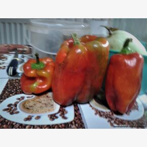Семейная коллекционная реликвия из Бельгии. Жаростойкий, засухоустойчивый, среднеранний сорт. От всходов до созревания плодов проходит примерно 110-120 дней. Куст среднерослый, достигает высоты 50-60 см. Листья светло-зелёные, имеют яйцевидную форму. Плоды кубовидно-призматической формы, размером 20х12 см и весом около 180-280 гр. Мякоть околоплодника имеет толщину около 6-8 мм. Перцы этого сорта обладают оригинальной окраской. В фазе технической спелости они нежного тёмно-фиолетового, почти чёрного цвета, по мере созревания, плоды становятся тигрово-полосатыми, а в фазе биологической спелости приобретают ярко-красно-оранжевый цвет с пурпурными разводами и красноватым румянцем. Примечательно, что окраска плодов не однократно меняется от технической спелости к биологической. Этот сорт универсален в использовании: плоды можно употреблять в свежем виде, фаршировать, замораживать, готовить из них лечо или запекать. Плоды долго сохраняют товарный вид и могут храниться после уборки в течение длительного времени. Агротехника: Самые сладкие и вкусные перцы получают рассадным способом. Первые плоды собирают через 4 месяца с момента посева семян на рассаду. Оптимальная температура прорастания семян 25-28⁰C. Всходы появляются через 14 дней. В грунт рассаду высаживают в возрасте 55-60 дней (рост около 20 см и около 10 развитых листьев). Рассаду в теплицу высаживают в середине мая, а в открытый грунт в середине июня, после окончания весенних заморозков. Схема посадки 70-90 см х 40-50 см.