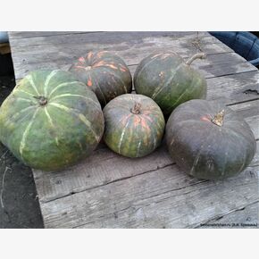 Кавбуз был получен при помощи действия препаратов нуклеиновых кислот тыквы и арбуза в Институте молекулярной биологии и генетики Национальной академии наук Украины. Занесен в Государственный реестр сортов Украины. На Украине арбуз называют кавуном, а тыкву - гарбузом, вот отсюда и пошло его название. Этот гибрид тыквы и арбуза унаследовал характерные особенности обоих родителей, по урожайности превышая их на 20-30 процентов. Растение раннеспелое, 60-80 дней, длинноплетистое, до 400 см, мощное, густооблиствлённое. Стебель кавбуза стелющийся, полый, ветвистый, достигает 3 метров в длину. Листья крупные, слабовыемчатые, с незначительным опушением. Цветки крупные, оранжево-желтые. Плод округло-плоский, массой 2-6кг. Кожура: Тонкая, но крепкая, сине-зелёно-серо-розовой крапчатой окраски, часто с светло-зелеными полосами. Мякоть: Плотная, ярко-оранжевая, сладкая, с дынным или арбузным ароматом, богата сахарами (фруктоза), каротином, пектином, витаминами. На одном растении образуется три-четыре плода с тонкой крепкой кожурой, оранжевой мякотью толщиной 4-7 см.Плоды его приятны на вкус, используются в пищу, на корм скоту и птице. Богаты каротином, содержат до 15 процентов сахара, преимущественно фруктозы, а также пектин, белки, витамины В, С, РР, Е. Из минеральных солей в них присутствует калий, кальций, магний, железо, кобальт и др. Семена длиной 2-3 см, овально-вытянутой формы, желто-белой окраски, напоминают семена арбуза и тыквы. Ценен отличным вкусом и долгим периодом хранения, может лежать хоть до нового урожая. Сорт отличается крайней холодостойкостью, переносит заморозки до -3 -5 С, плоды также не повреждаются слабыми заморозками.В пакете 5шт. семян.