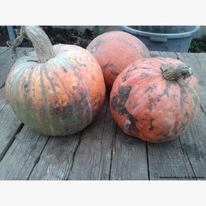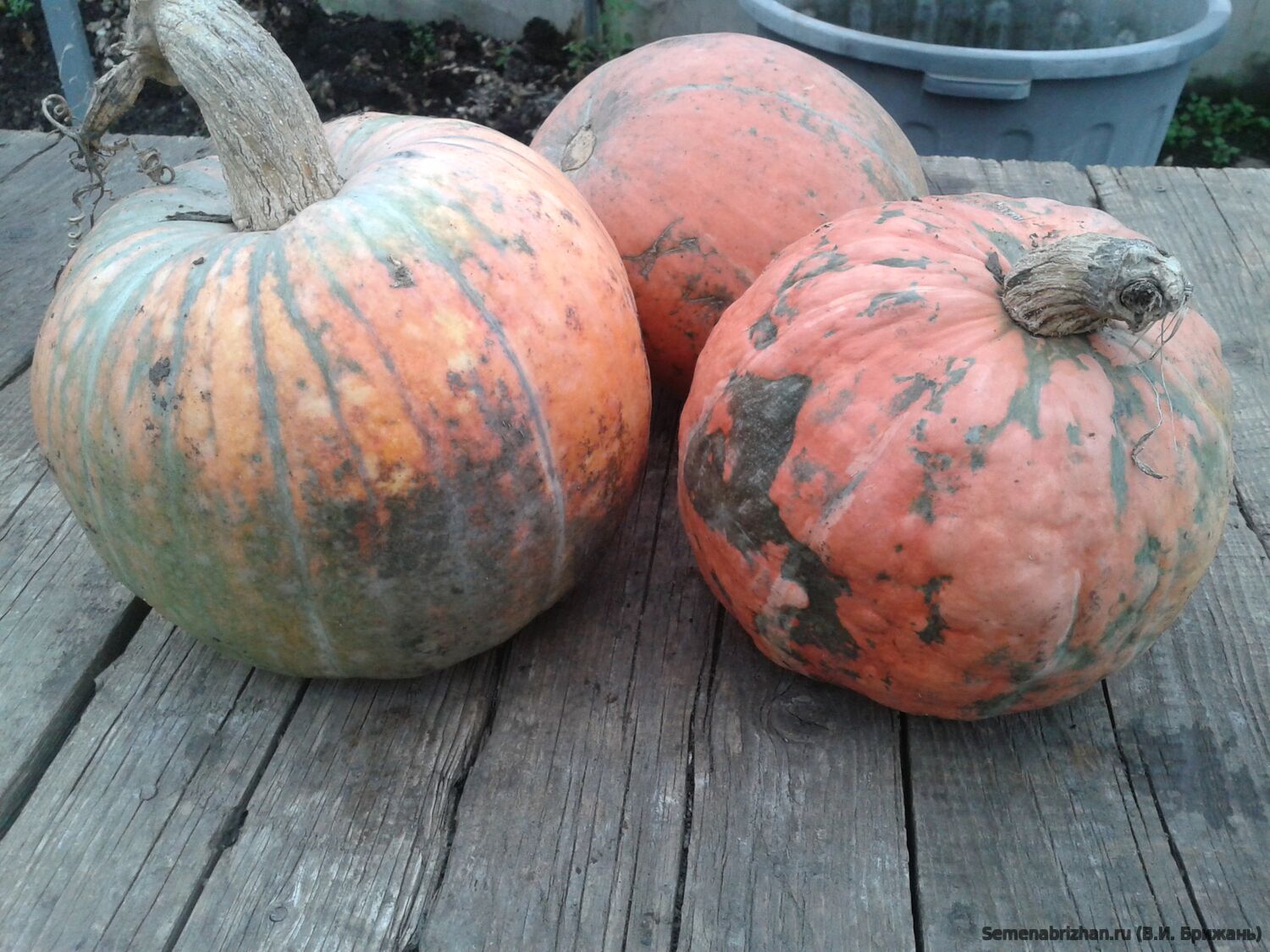 Среднеспелый (110-115 дней) сорт - молекулярный гибрид арбуза и тыквы, унаследовавший характерные особенности обоих родителей, а по урожайности превышающий их на 20-30%, с очень высоким урожаем и несколько неплохим качеством мякоти, столового назначения. Кавбуз был получен при помощи действия препаратов нуклеиновых кислот тыквы и арбуза в Институте молекулярной биологии и генетики Национальной академии наук Украины. Занесен в Государственный реестр сортов Украины. Стебель кавбуза стелющийся, полый, ветвистый, достигает 3 метров в длину. Листья крупные, слабовыемчатые, с незначительным опушением. Цветки крупные, оранжево-желтые. Плоды серо-сине-зелёной окраски, часто с белыми продольными полосками и оранжево-лососевыми широко-крапчатыми вкраплениями, красивой овальной формы, с оранжевой, сладкой, плотной мякотью и утончённым дынно-мускатным ароматом, массой 3-4 кг. Мякоть жёлто-оранжевая, плотная, ароматная, сладкая. Камера с семенами сухая, очень плотная и хрустящая мякоть, при разрезании трещит как спелый арбуз, режется легко. Запах свежий дынный. Средне-сочная, абсолютно без волокна. Сырая слегка сладковатая, вкусная. При приготовлении иногда сладость усиливается до приторности. Кусочки - форму держат, но неравномерно: ближе к кожуре, части сохраняют форму, а которые ближе к семенной камере разминаются. По вкусу напоминает вареную (запечённую) нежную молодую морковку. Тыквенного запаха при прогреве не замечено. В запеченном виде без сахара - прибавляется ощутимо сладость, текстура нежная, не волокнистая, вкусная. С одного растения можно получить до 16 кг плодов. Семена у кавбуза овально-вытянутые, желтовато-белые, или оранжевые, панцирные, длиной 2-3 см, напоминают семена арбуза и тыквы. Ценность сорта: стабильный урожай, высокое содержание бета-каротина, пригодность для длительного хранения(сохраняется до 7ми месяцев). Идеально подходит для диетического и детского питания, активизирует обмен веществ. Рекомендуется для употребления в свежем виде, запекания, домашней кулинарии, переработки. Применение: Мякоть едят свежей (особенно рекомендована диабетикам), используют для варенья, джемов, цукатов, пюре; семена тоже ценны. Съедобны и цветы. Полезные свойства: Уникальный набор витаминов, пектинов, антиоксидантов; помогает выводить радионуклиды, полезен при диабете, заболеваниях ЖКТ, печени, сердечно-сосудистой системы. Масло из семян используется для лечения почечнокаменной и желчнокаменной болезней, а теплый отвар из семян – при опухолях и импотенции. В пакете 5 шт. семян.