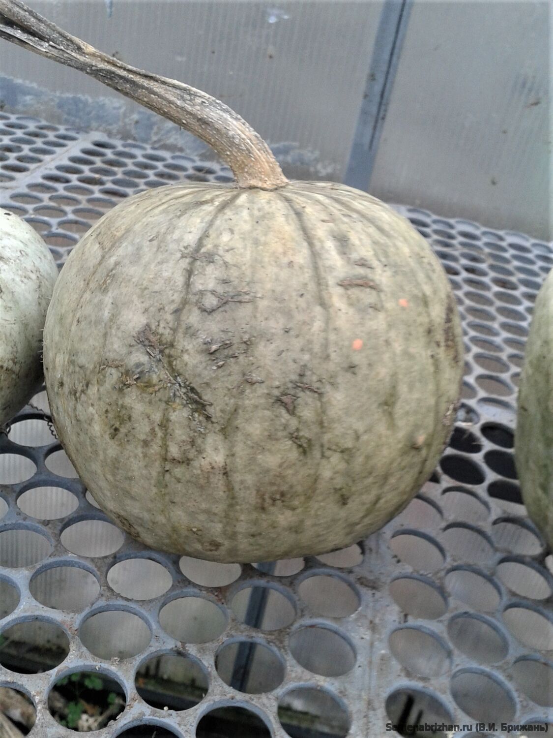 • Это уникальный гибрид арбуза и тыквы, ценящийся за сладкую, ароматную, оранжево-красную мякоть с дынным ароматом и полезными свойствами, особенно для диабетиков, так как содержит природный инсулин; он хорошо хранится до зимы и употребляется в сыром виде как десерт или в заготовках, сочетая пользу и вкус обоих родительских растений. Характеристики сорта: Растение: Мощное, длинноплетистое (до 1-1,5 м и более), с крупными листьями, похоже на тыкву. Плоды:Форма: Округлая или овальная. Окраска: Голубовато-серо-зеленая, с характерным сизым налетом, может быть слабо сегментирована. Вес: Средний около 3 кг., может быть больше. Мякоть: Нежно-оранжевая, очень сладкая, с тонким дынным ароматом и арбузным послевкусием. Вкус: Сладкий, с высоким содержанием сахара (фруктозы). Полезность: Богат пектинами, витаминами (A, E, C, группы B), каротином, клетчаткой. Содержит природный инсулин, снижающий уровень сахара в крови, что делает его идеальным для диабетиков. Применение:Свежий вид: Употребляется сырым, как десерт. Заготовки: Идеален для варенья, джемов, цукатов, оладий, а также запекания, раскрывая все вкусовые качества. Лечебное питание: Полезен для пищеварения, почек, печени, при ожирении, атеросклерозе. Масло из семян используется для лечения почечнокаменной и желчнокаменной болезней, а теплый отвар из семян – при опухолях и импотенции. Особенности выращивания:Неприхотливость: Хорошо растет и дает урожай даже в непростых условиях. Хранение: Отлично хранится до весны, как тыква. Перекрестное опыление: Лучше сажать подальше от крупноплодных тыкв, чтобы избежать переопыления.