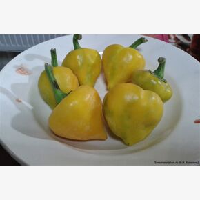 • ПРОИСХОЖДЕНИЕ: сорт создан украинскими селекционерами. СРОК СОЗРЕВАНИЯ: ранний. ТИП И ВЫСОТА КУСТА: до 40-60см; растение довольно раскидистое, с тонкими гибкими стеблями, с короткими междоузлиями, густооблиственное; плоды поникающие, оригинальной формы, длиной до 10см. ФОРМИРОВКА: не требуется; кусты перегружены урожаем, поэтому опора желательна. МАССА ПЛОДОВ: от 120 до 180 грамм (иногда и более). ТОЛЩИНА СТЕНКИ: 8-12мм. ФОРМА ПЛОДОВ: перевёрнутая капля с характерным острым носиком. ЦВЕТ ПЛОДОВ: жёлтый с гладкой блестящей поверхностью. ВКУС ПЕРЦЕВ: отличный насыщенно-сочный с классическим ароматом; мякоть сочная, хрустящая, очень сладкая — один из самых сладких и вкусных сортов перца! ИСПОЛЬЗОВАНИЕ: перец сладкий «Леся» необыкновенно хорош в свежем виде, удобен для фарширования и запекания, для заморозки и сушки, для любых видов консервации. У сорта отличная лёжкость и транспортабельность, прочная кожица предохраняет перцы от гниения, не растрескивается на кустах и во время хранения, не повреждается при перевозке. Сладкий перец «Леся» сажаем каждый год, он у нас в любимчиках: ультраскороспелый (первые плоды собираем уже через 4 месяца от посева семян на рассаду!), урожайный, с необычайно красивыми и очень сладкими плодами. Каждый небольшой куст даёт до 30-35 красивых, глянцевых плодов. Перцы не просто сладкие — мега-сладкие, переполненные вкуснейшим соком и богатым ароматом! Стенки толстые, сахаристые, мясистые: одним словом — вкуснятина, каких мало!Благодаря неприхотливости перец «Леся» можно выращивать и в открытом грунте, и в теплицах на всей территории России и в странах СНГ.  Сорт жаростойкий, устойчивый ко многим «перечным» заболеваниям. Очень вкусный, нарядный и урожайный сорт!  В пакете 20 шт. семян.